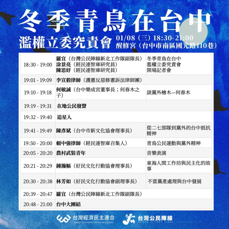 【冬季青鳥在台中,濫權立委究責會(附流程)】