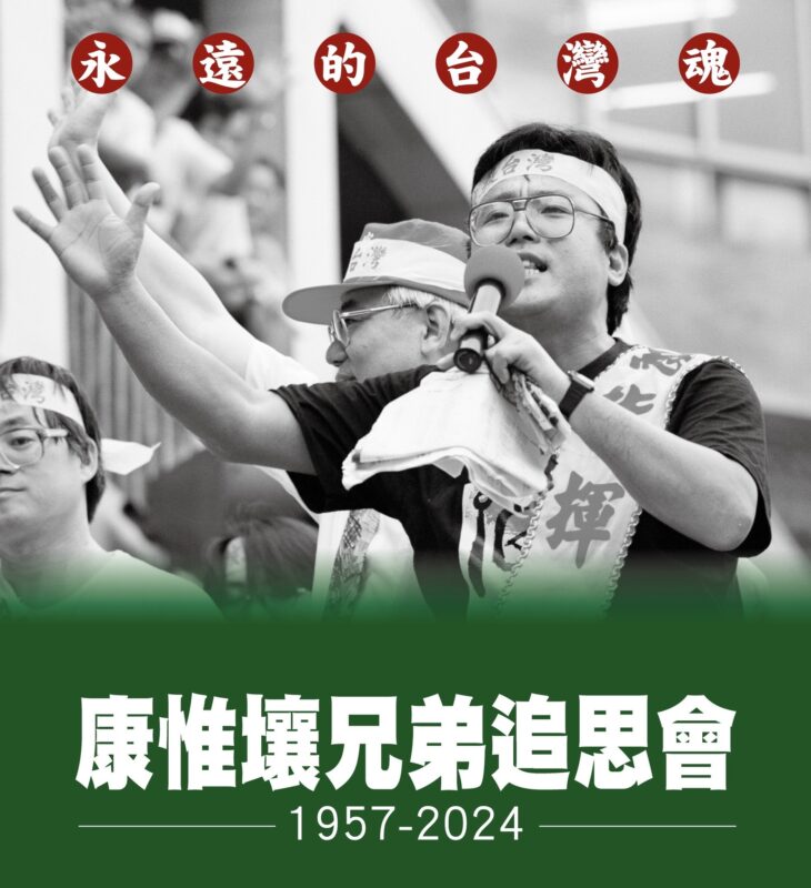 一生堅決勇敢的康惟壤、不違本心,勇於為弱勢者發聲,是堂堂正正的台灣男子漢!願您化作千風,永遠守護台灣!
