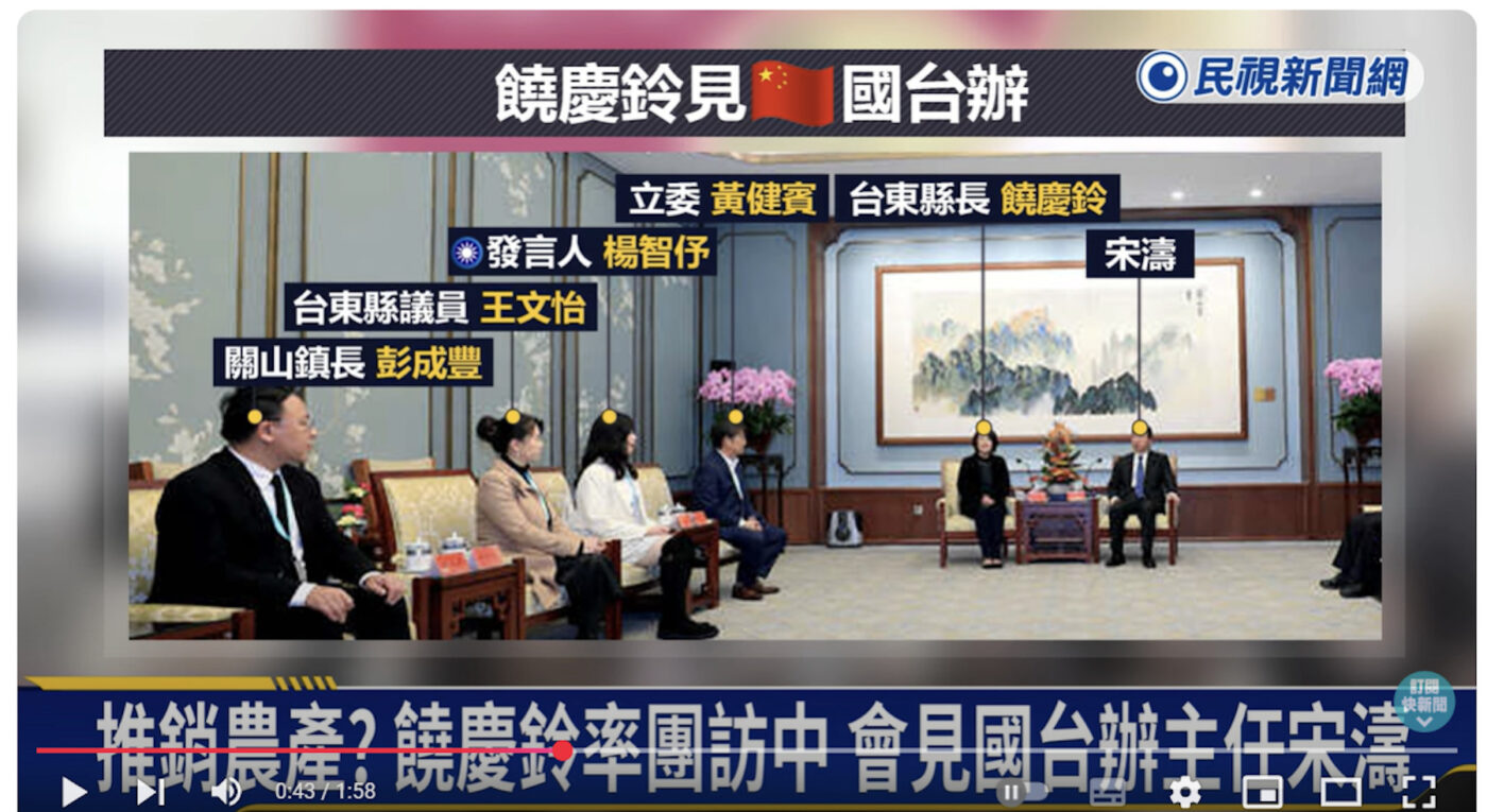 高唱「兩岸一家人」,「九二共識,一國兩制」,「反台獨」。