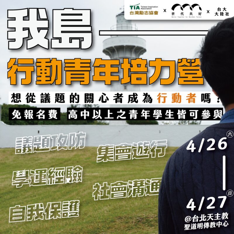 我們好奇也渴望了解過去,希望這些寶貴的經驗能夠跨越時間被傳承,因此世代共好與台大大陸社、TIA 台灣勵志協會共同主辦「我島——行動青年培力營」,邀請你一起加入。