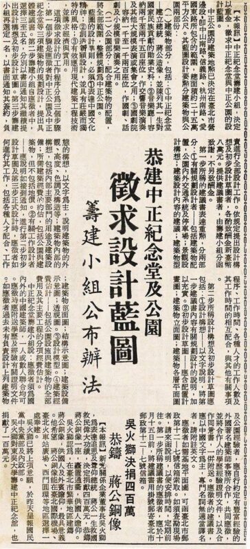 中正紀念堂及公園籌建小組公布徵選辦法新聞
