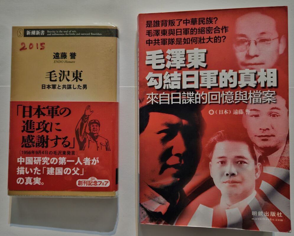 左:遠藤譽,《毛沢東日本軍と共謀した男》(新潮社,2015)。