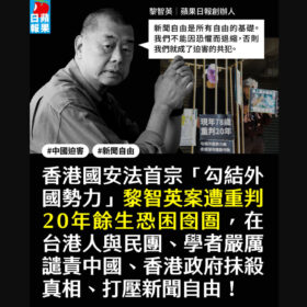 【香港國安法首宗「勾結外國勢力」黎智英案判刑記者會——重判20年餘生恐困囹圄,嚴厲譴責中港政府抹殺真相、打壓自由】