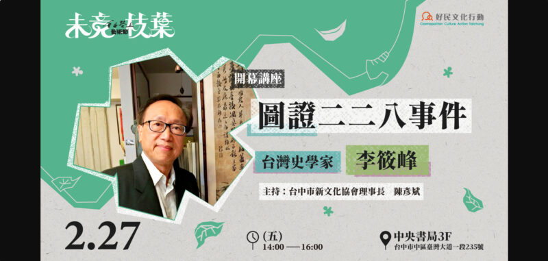 2.27【自由路上藝術節:未竟枝葉】開幕講座:圖證二二八事件/歡迎報名參加!!