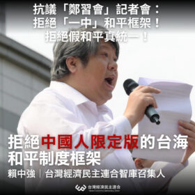 【抗議「鄭習會」記者會:拒絕「一中」和平框架!拒絕假和平真統一!】賴中強律師記者會發言稿 台灣經濟民....