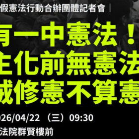 【沒有一中憲法!民主化前無憲法 老賊修憲不算憲法】「501埋葬假憲法行動」合辦團體0422記者會採訪通知