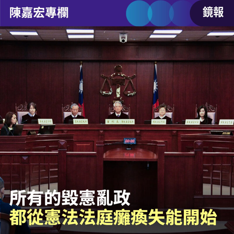 「所有的毀憲亂政都是從憲法法庭癱瘓開始」,〔鏡報〕這個標題完全值得贊同。
