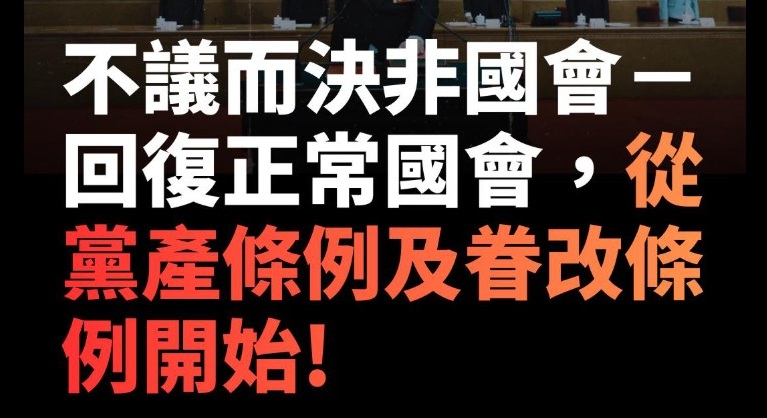 以上之《黨產條例》及《眷改條例》修正草案,更是從未召開委員會審查,直接自委員會中抽出逕付二讀,明顯違反憲法法庭114年憲判字第1號判決要求立法院須踐行正當立法程序、遵守公開透明與討論原則之要求;毫無溝通、討論,或共同尋求折衷、妥協方案,僅依循著「票多的贏、票少的輸」之叢林法則,使國會繼續延續「不議而決」之立法模式。立法院為人民議決之憲政功能,全然未能發揮,嚴重違背民主憲政及民意政治的基本原理。