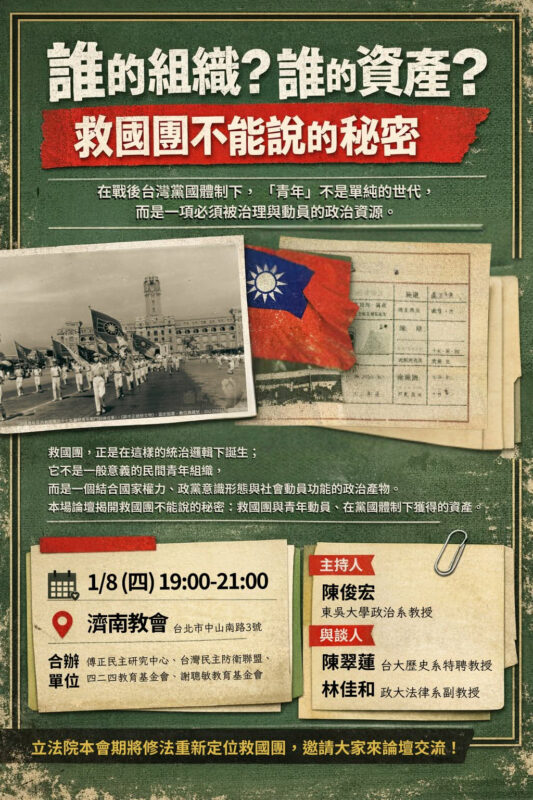 誰的組織?誰的資產?救國團不能說的秘密🫣【1/8講座】/歡迎報名參加!!