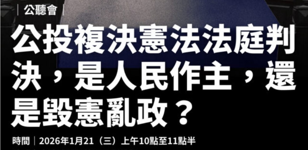 【公投複決憲法法庭判決,是人民作主,還是毀憲亂政?】2026.01.21公聽會採訪通知