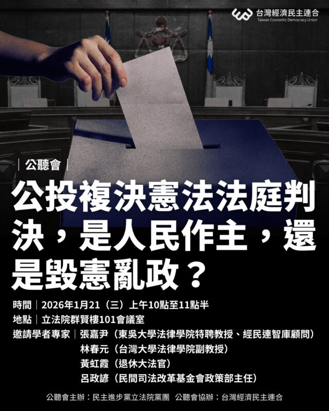 (轉載自:台灣經濟民主連合 2026/1/20 臉書貼文)