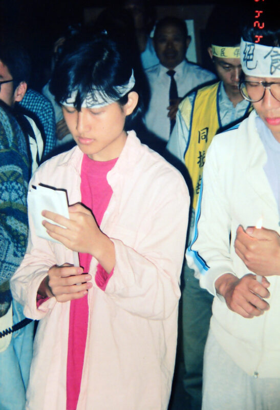 1991年4月18日,鄭麗君在台灣大學門口,為了抗議山中老賊參與修憲,發起一場激烈絕食運動,她和台大、東吳、文化等九名同學展開一場絕食行動。我以社會運動影像紀錄者,多次來台大觀察這場絕食行動。