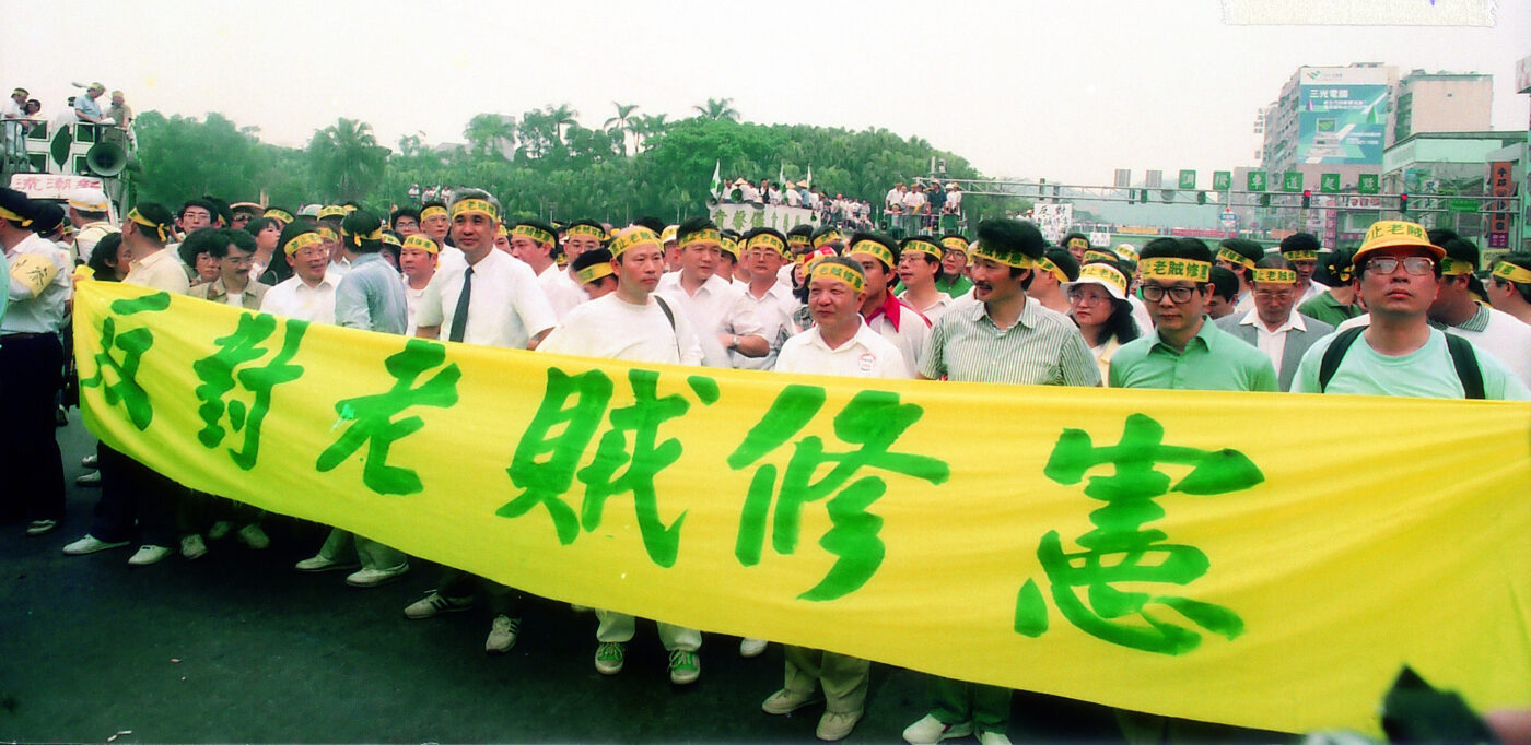 1991年4月17日,民進黨推動的「417反對老賊修憲」大遊行。就在台灣大學門口出發,展開反老賊抗爭。