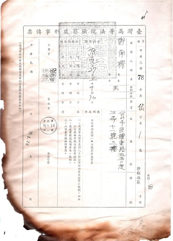 歷史上的1/21:1989年高檢署以涉嫌叛亂罪傳喚鄭南榕