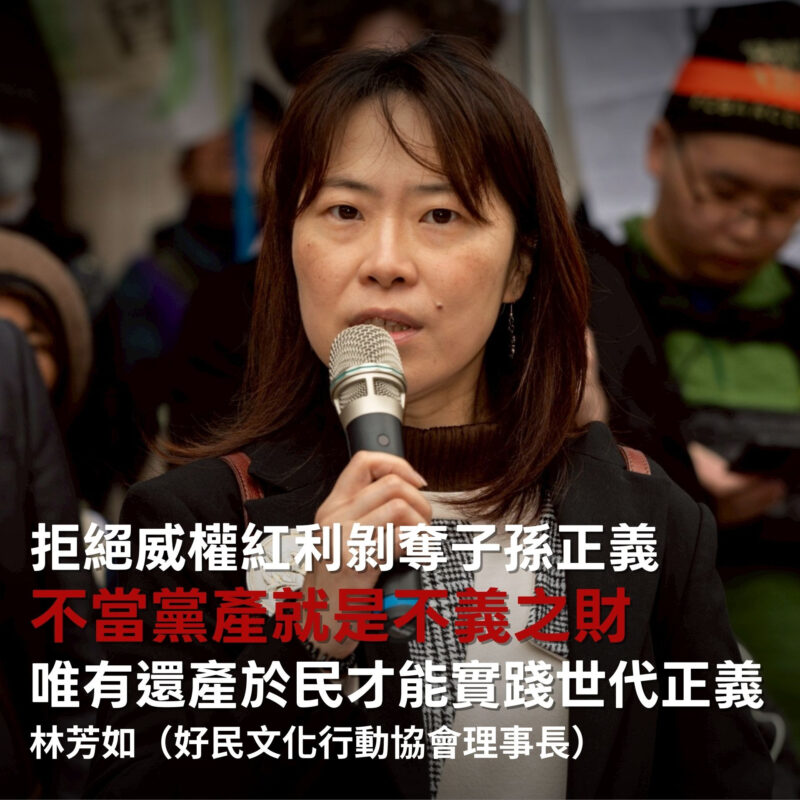 ▍林芳如(好民文化行動協會理事長):拒絕威權紅利剝奪子孫正義!不當黨產就是不義之財,唯有還產於民才能實踐世代正義!
