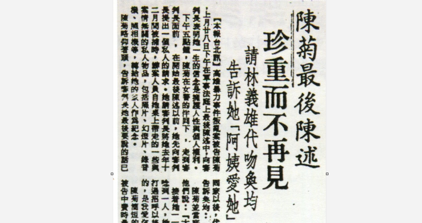 1980年陳菊陳菊的最後陳述:珍重而不再見