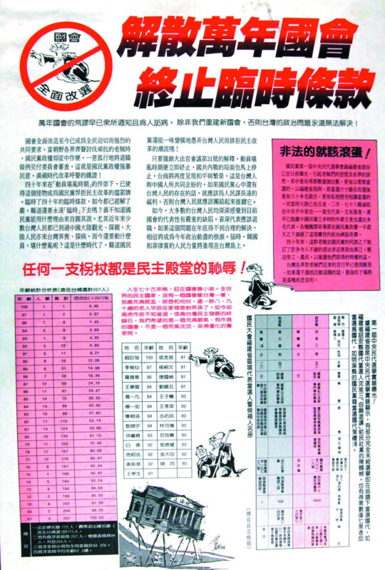 萬年國會歷經許久的抗爭,老賊每人領走五百多萬的退職金,1991年12月31日,萬年國會才正式成為歷史的一部分。