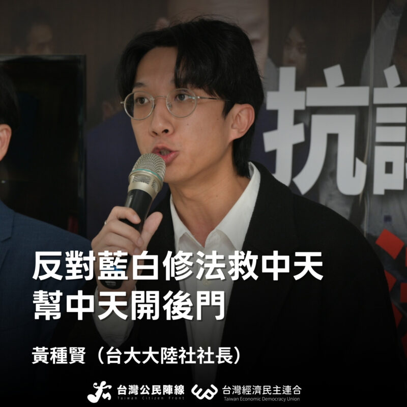 (轉載自:台灣經濟民主連合 2026/1/30 臉書貼文)