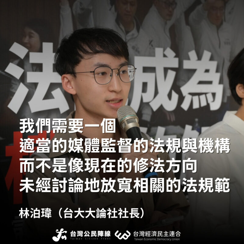 ▌林泊瑋:我們需要一個適當的媒體監督的法規與機構,而不是像現在的修法方向,要一味地未經討論地放寬相關的法規範