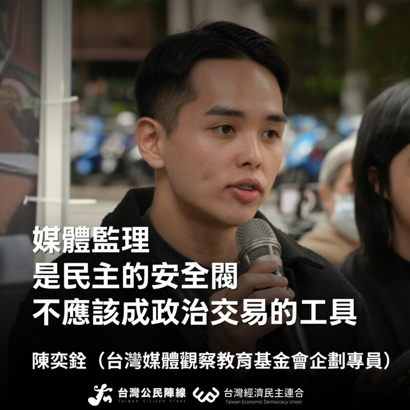 ▌陳奕銓:媒體監理是民主的安全閥,不應該成政治交易的工具