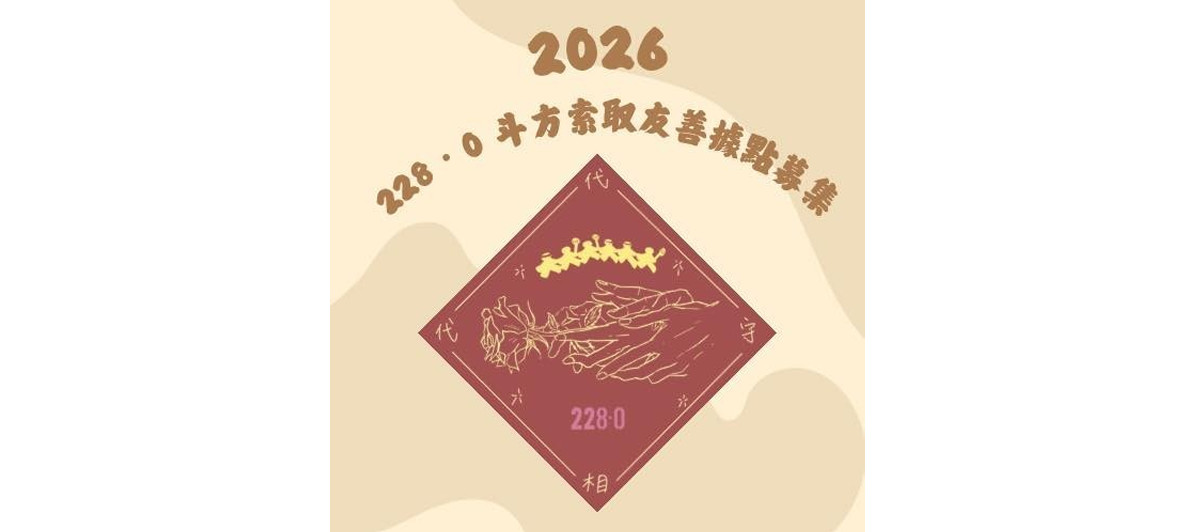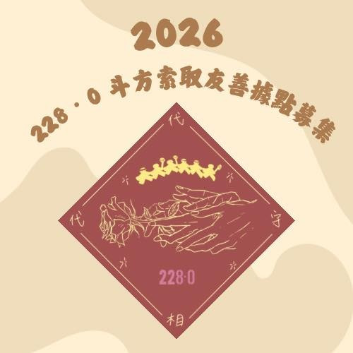 值此農曆新年,228・0 團隊以「獻花」為核心意象製作紀念斗方。交疊的雙手,象徵記憶相依;牽手成環的人群,代表我們選擇同行。自由與民主,從來不是理所當然的存在,而是需要在日常中,被一個又一個人、一個又一個空間,溫柔守護。
