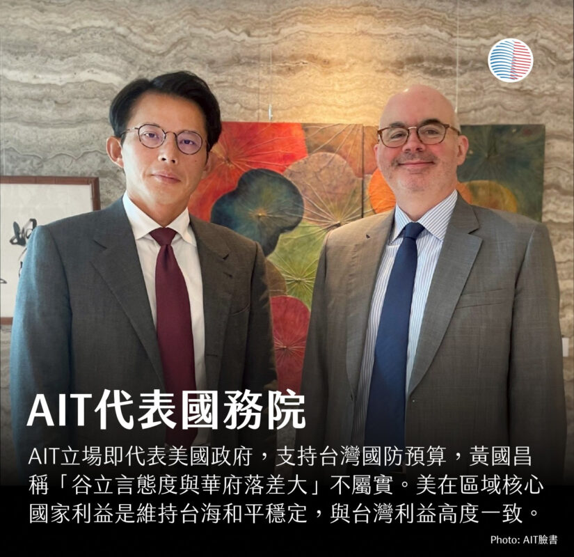 這除了表示民進黨提出的1.25兆就是美方所支持的,而美方就是「國務院與AIT」。所以,黃國昌所謂「谷立言態度與華府落差很大」就是胡扯。