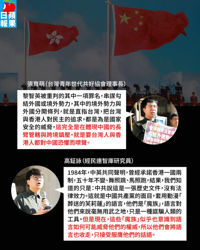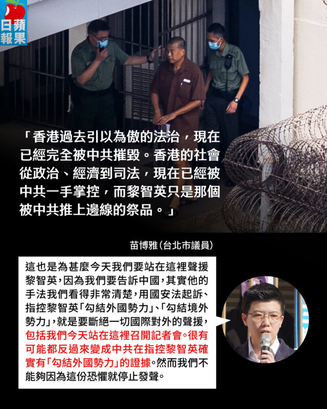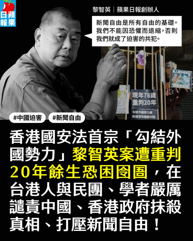 【香港國安法首宗「勾結外國勢力」黎智英案判刑記者會——重判20年餘生恐困囹圄,嚴厲譴責中港政府抹殺真相、打壓自由】