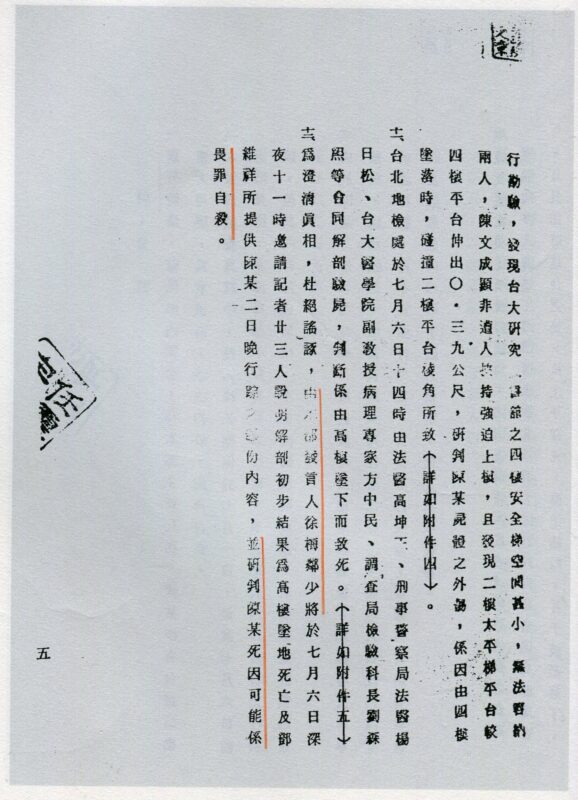 1981/7/6深夜警總發言人徐梅鄰少將出面定調:陳文成「畏罪自殺」