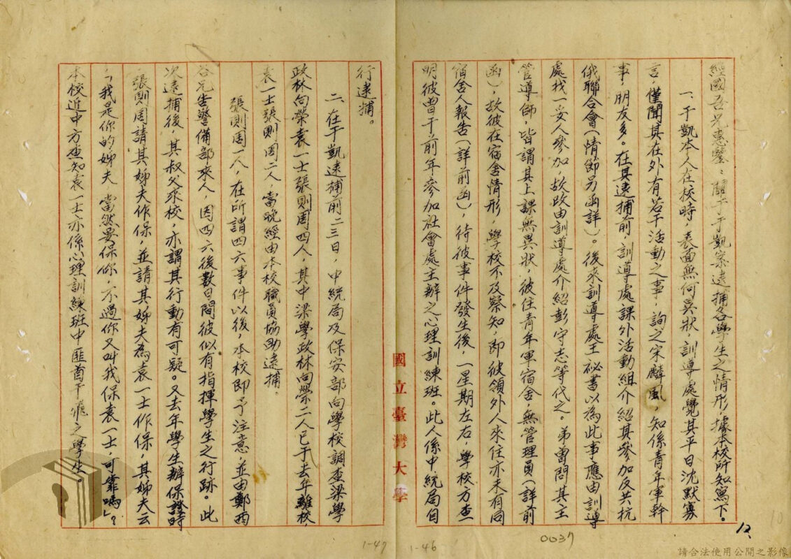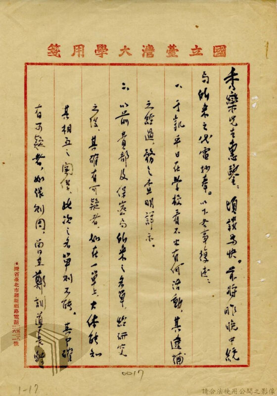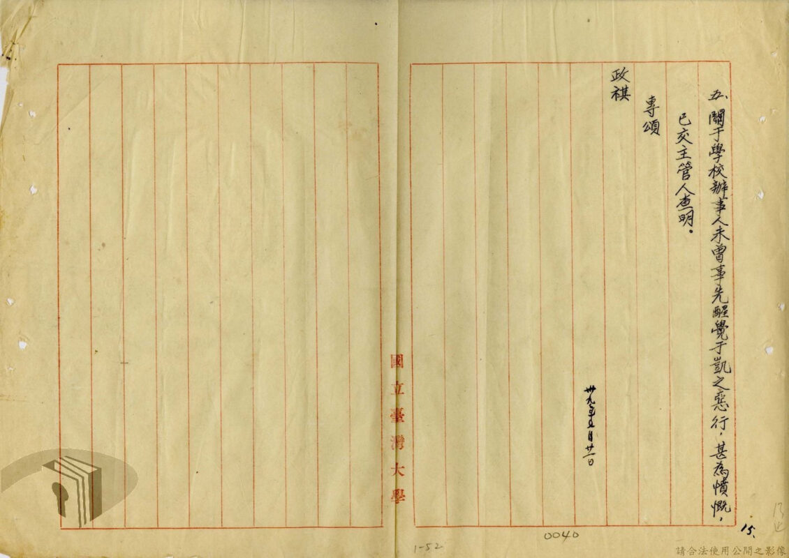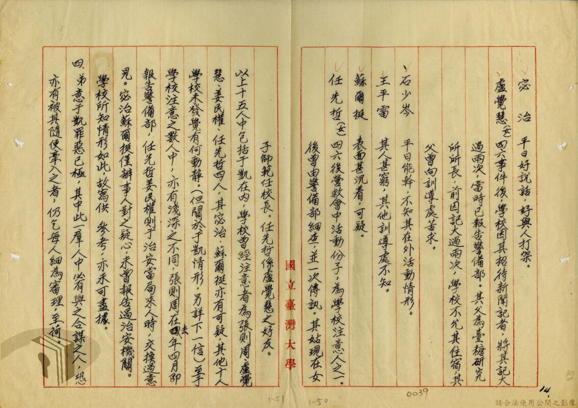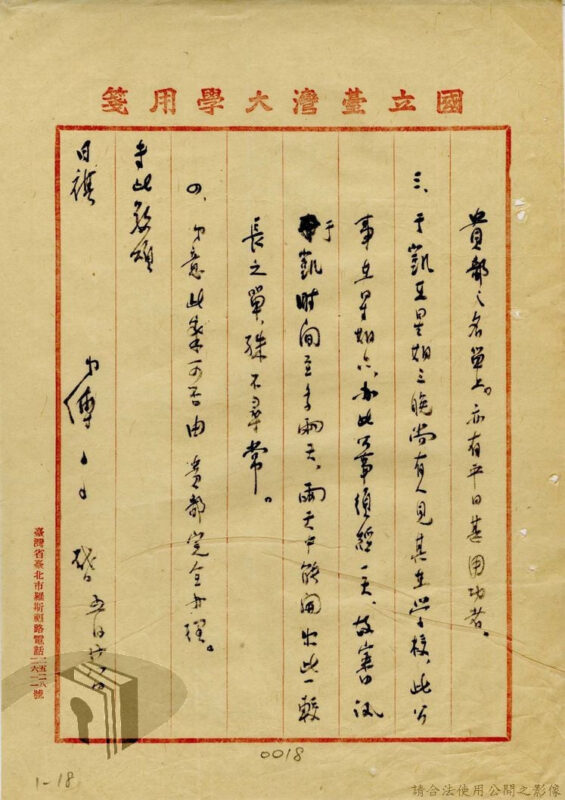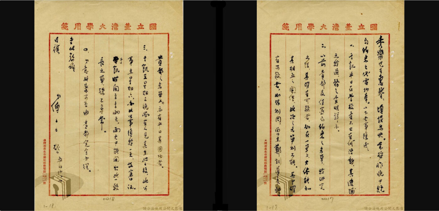 張老師所說的資料應該是指傅斯年的兩封信:一封給保安司令部保安處長林秀欒(1950/5/28),一封給蔣經國(1950/7/21)。(圖1-6)