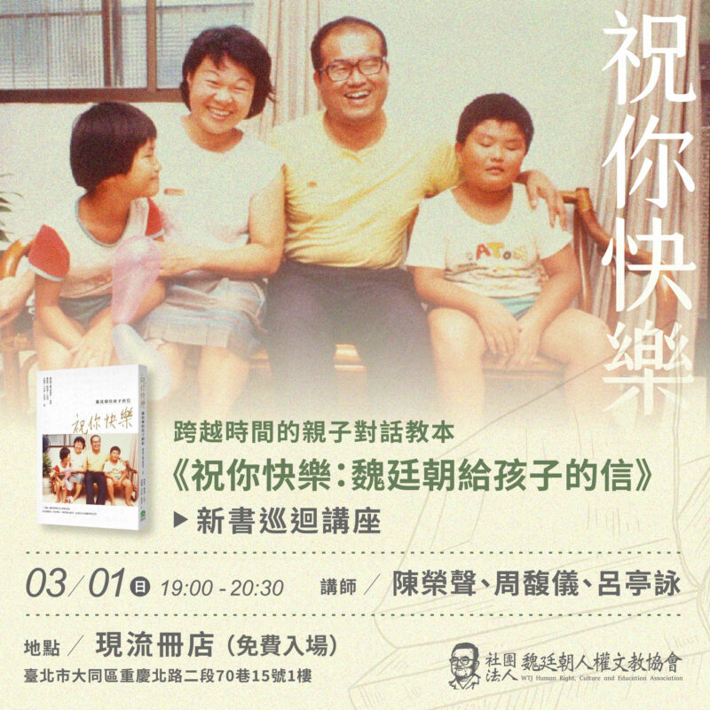 《祝你快樂:魏廷朝給孩子的信》新書巡迴講座/歡迎報名參加!!