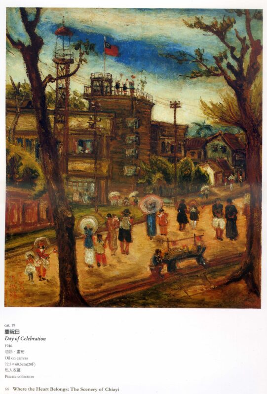 這次展出的畫當中,有一幅是陳澄波在一九四六年畫的《慶祝日》,描繪臺灣光復後,臺灣人民的歡慶氣氛。高樓上飄揚著青天白日滿地紅國旗,頂樓欄杆旁站著揮舞國旗的孩童,街上的小販也在賣國旗。現在這裡是嘉義市政府警察局所在地。看來真的很反諷。陳澄波和其他幾位參議會議員擔任「和平使者」,到嘉義水上機場想調解軍隊和人民的對峙,不也是過度天真?在這裡,容許我有點跳tone,試問:如果我們今天對會將諾貝爾和平獎得主劉曉波關到監牢中的中國政權存有幻想,那歷史又教導了我們什麼?