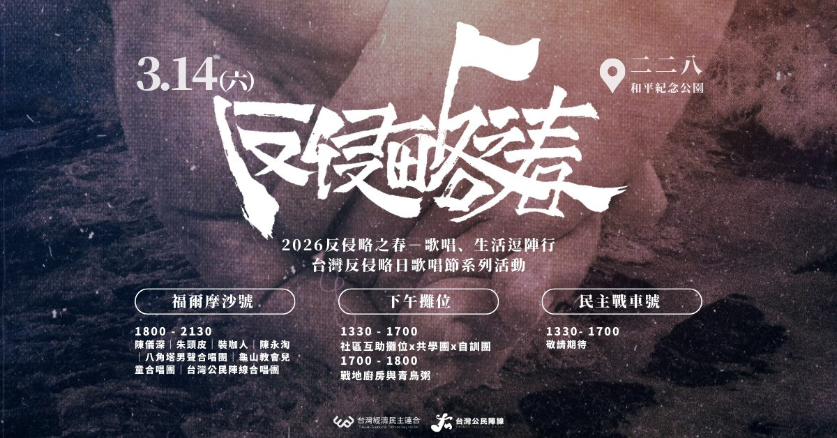 【2026反侵略之春-歌唱、生活逗陣行】台灣反侵略日歌唱節系列活動(完整資訊)/歡迎參加!!