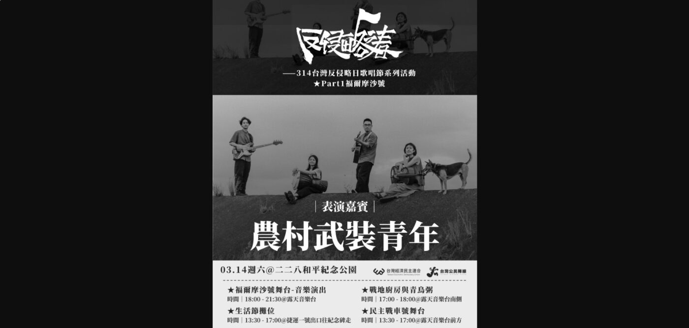 314週六晚上,反侵略日來聽農武,作伙守護家己ê土地。