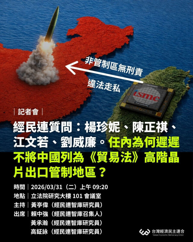 經民連記者會後,隔天(3/27日),天下雜誌報導《美國查AI走私!美超微案恐引發台灣晶片301調查》,路透社等外電並報導,與中國解放軍關係密切的兩所軍工大學已取得搭載輝達高階晶片的伺服器。經民連於3月26日記者會即已沉痛地指出:多數民主國家將違法輸出高階晶片列為刑事犯罪行為,獨獨台灣經濟部說違反貿易法出口管制規定將高階晶片輸往中國,只能罰錢,不構成犯罪。中國針對台灣部署飛彈數量高達900至1,500枚,而且不斷在增加中。最應該管制對中國晶片輸出的台灣經濟部,卻放任台積電生產的晶片,被違法轉賣到中國,私下協助中國解放軍製造飛彈瞄準台灣,這是何其荒謬!