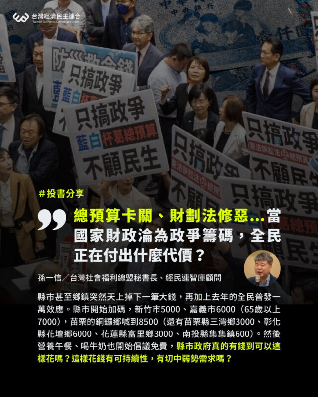 【台灣這個國家,明明就可以更好!總預算卡關、財劃法修惡…當國家財政淪為政爭籌碼,全民正在付出什麼代價?】(投書分享)