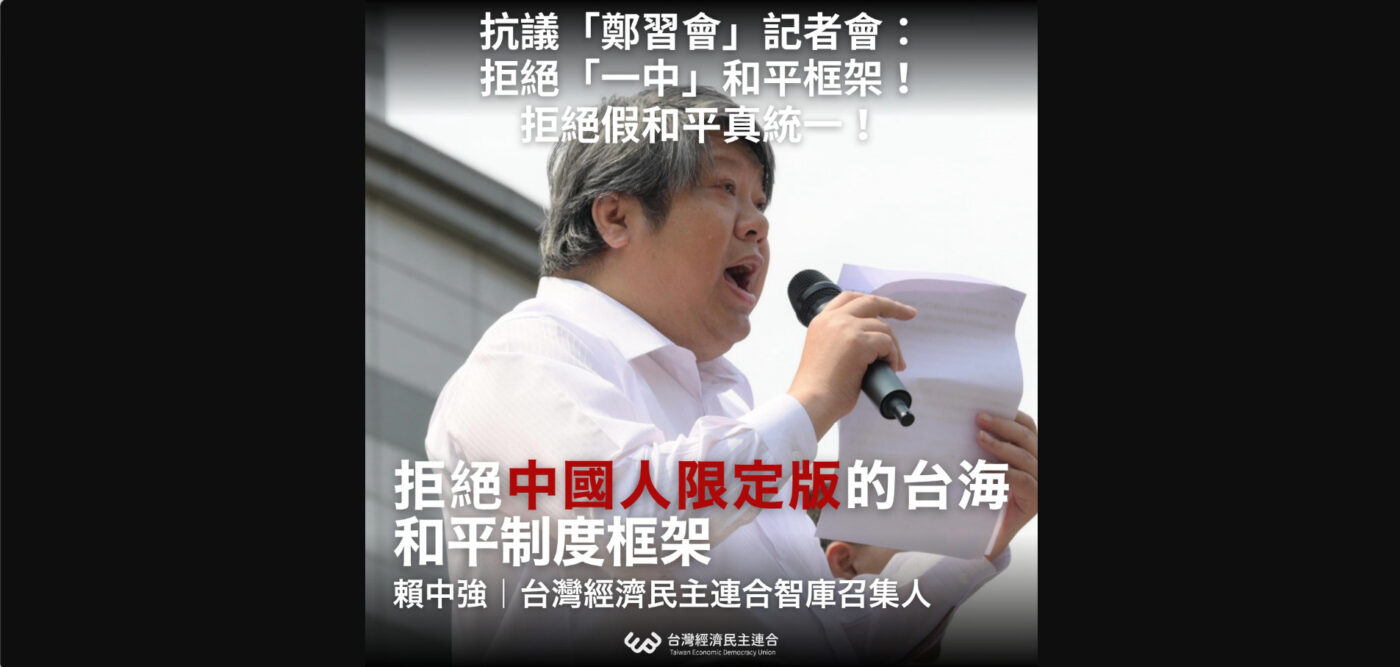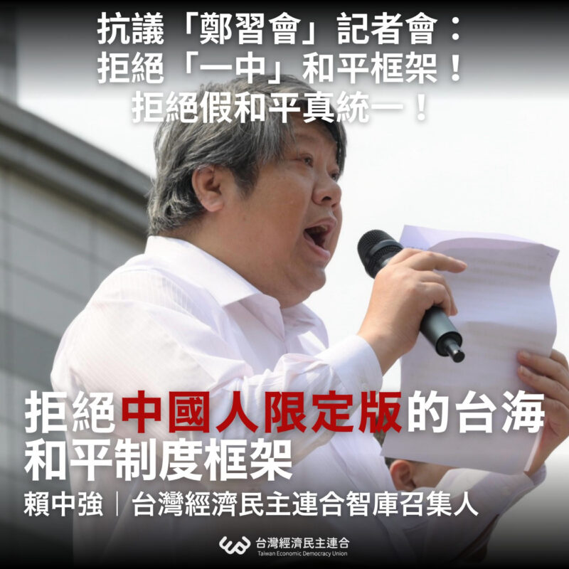 【抗議「鄭習會」記者會:拒絕「一中」和平框架!拒絕假和平真統一!】賴中強律師記者會發言稿