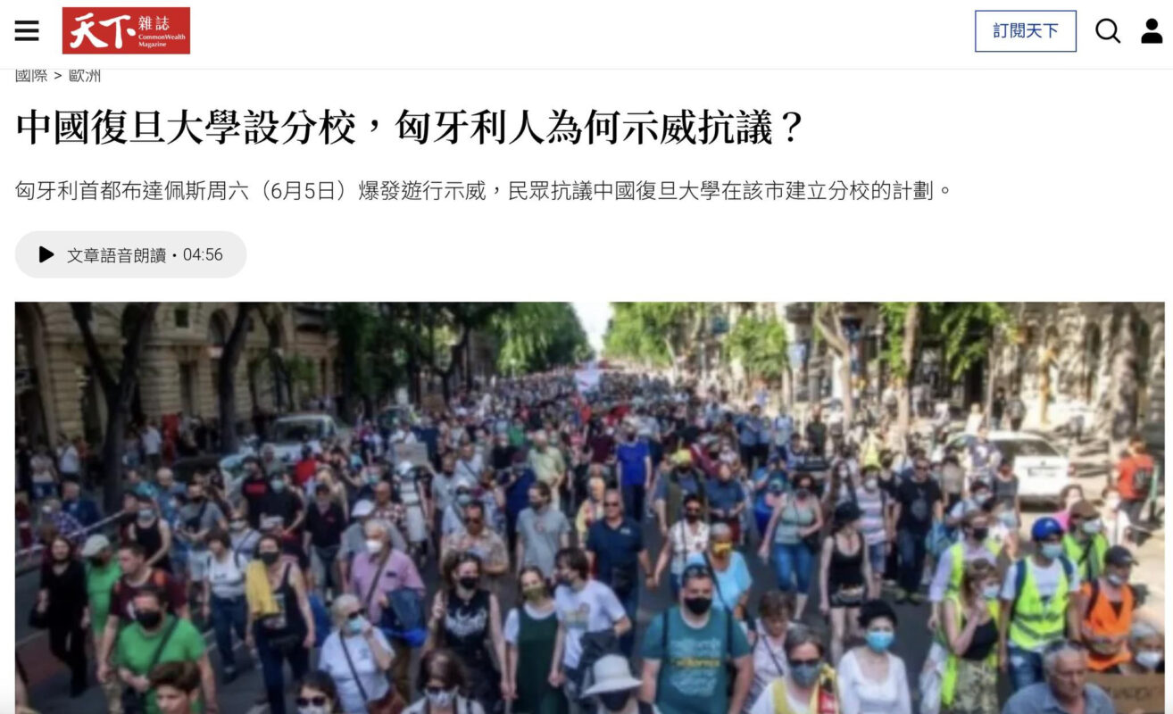 圖片來源:中國復旦大學設分校,匈牙利人示威抗議,市長直接將周邊道路改名為「達賴喇嘛街」,及「自由香港路」
