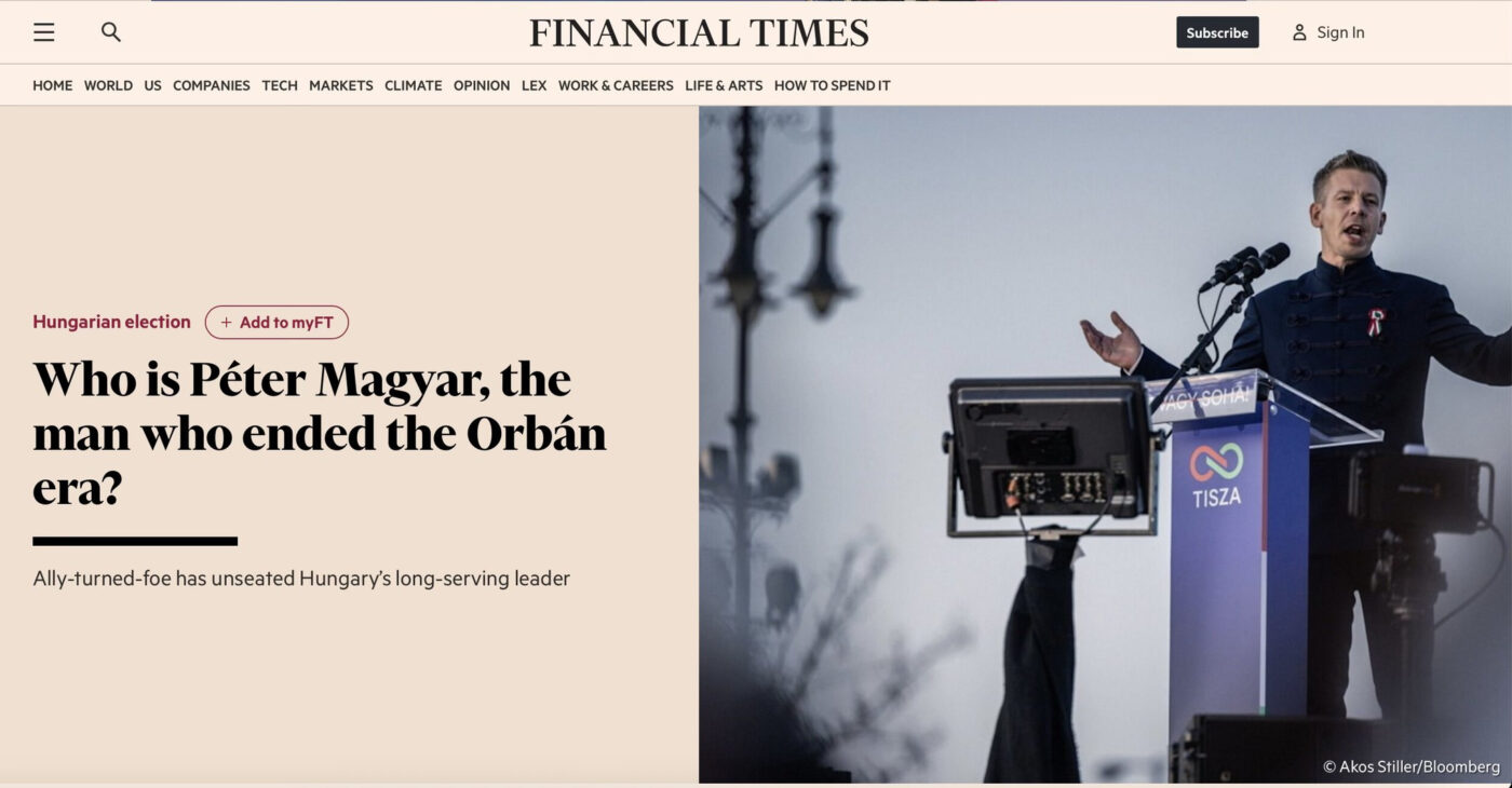 當你對民主失望,想想匈牙利,想想馬札爾(Magyar Péter)。