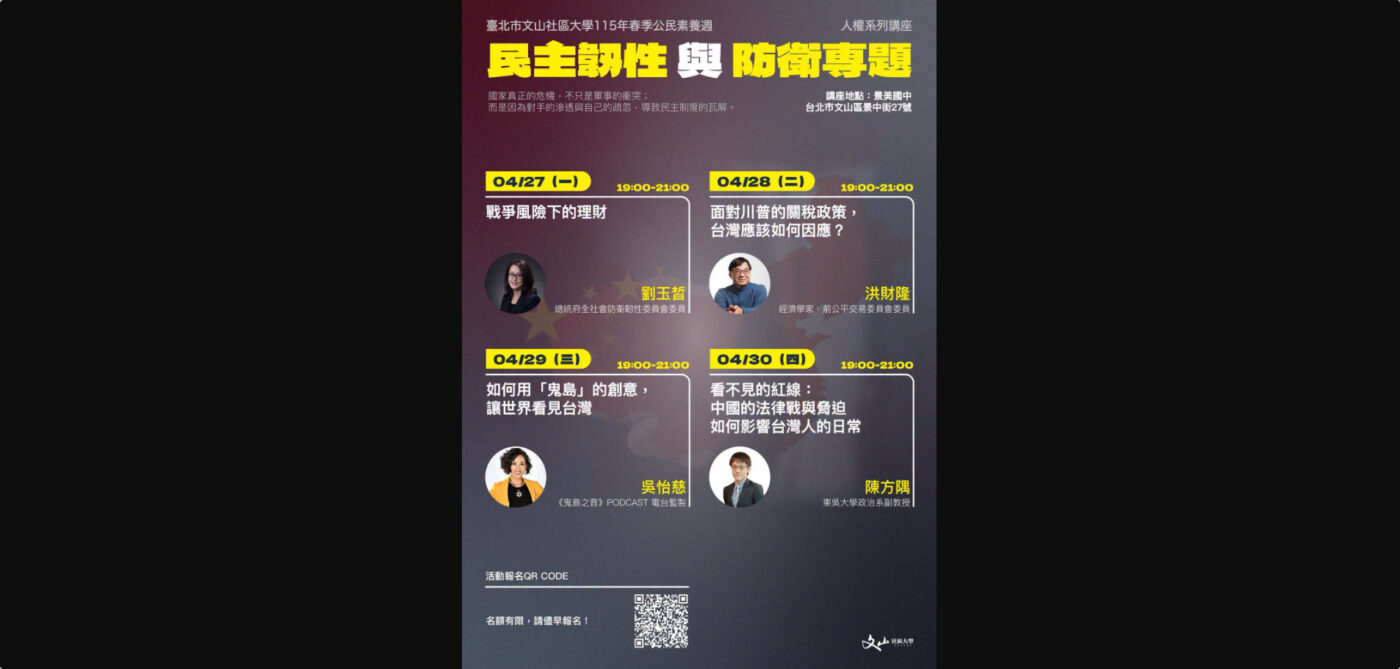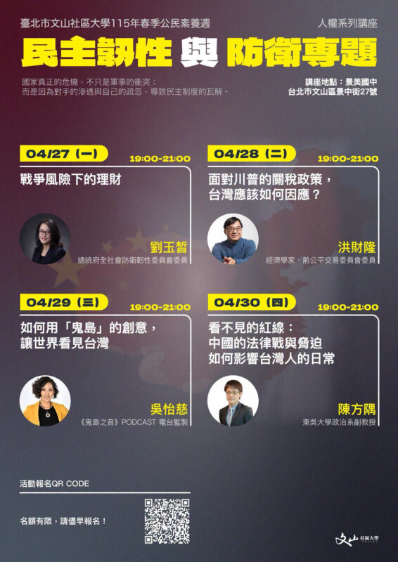 或許在面對外界嚴肅的挑戰,台灣內部也因為價值觀的差異產生了對立和撕裂。社區大學作爲公民對話的平台,我們基於客觀事實,提出議題討論,歡迎各界持正反意見者,ㄧ起參與對話。
