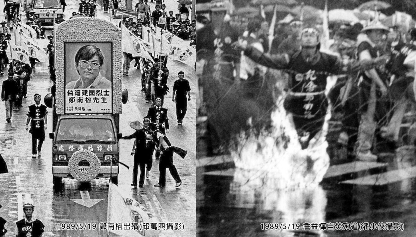 1989年5月19日是鄭南榕出殯的日子。一個月多前的4月7號,鄭南榕以自焚抵抗國民黨對言論自由的箝制,捍衛臺灣人民喊出「臺灣獨立」的自由。鄭南榕出殯的那天,當葬禮隊伍行經總統府前,行隊中的詹益樺拿出預留的汽油,追隨鄭南榕的腳步,引火自焚後倒在警方架設的拒馬上,為臺灣建國運動留下沉痛而深刻的烙印。