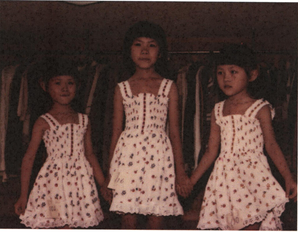 我扶著她,她哭著跪下去,秀靜爲她披上長蔴帽。林太太顫巍巍地站起來,哭著說:「亮均、亭均,媽媽回來看你們了⋯⋯」她們兩人,從相框中向外微笑著,看著媽媽。亮均手叉腰,亭均在她後面,兩手搭在她肩上做「火車」,那模樣頑皮可愛極了,相片又剛好是在客廳拍的,好像她們還在這裡似的。