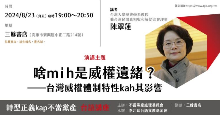 【活動推廣】2023/08/27 轉型正義 kap 不當黨產-台語講座【第一場】Tuì KMT/ROC 黨國統治到民主化——台灣轉型正義 kap 歷史記憶