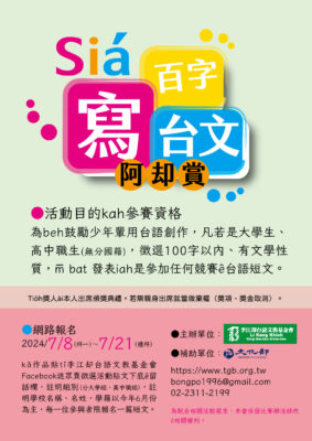 2024百字寫台文徵選活動 李江却台語文教基金會 2024百字寫台文徵選活動簡章:https://www.tg........