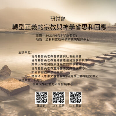 【活動推廣】2023/06/17「轉型正義的宗教與神學省思和回應」研討會 臺灣本土神學研究中心、台灣基督長老教........