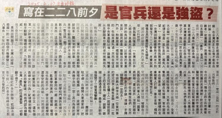 認識二二八事件應有的問題意識 李筱峰 (原載2023.2.25《自由時報》自由廣場) 二二八事件的歷史,在兩蔣........