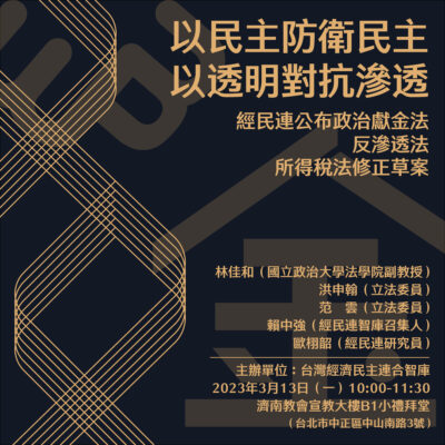 【活動推廣】2023/03/13 以民主防衛民主,以透明對抗滲透 — 經民連公布政治獻金法、反滲透........