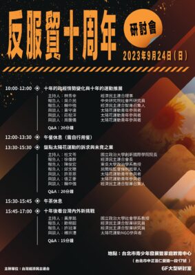 【活動推廣】2023/09/09-09/17 開學後的第一堂公民課:十年後回看反服貿太陽花運動 經濟民主連合 ........