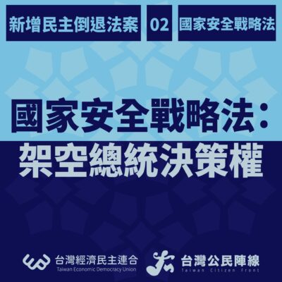 架空總統職權的國家安全戰略法草案|新增民主倒退法案系列貼文(2/4) 經濟民主連合 提案人:陳永康(不分區)連........