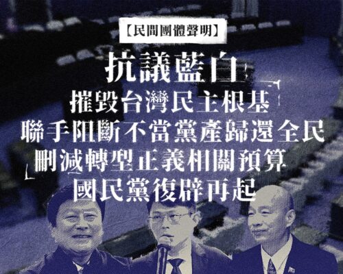 抗議藍白摧毀台灣民主根基 聯手阻斷不當黨產歸還全民 刪減轉型正義相關預算 國民黨復辟再起 陳文........