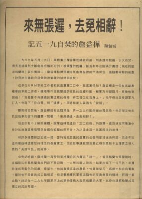來無張遲,去免相辭!記五一九自焚的詹益樺 陳銘城(寫於1996年5月) 一九八九年五月十九日,草根黨工詹益樺在........